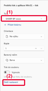 - Vyberte ovladač tiskárny pro daný přístroj.