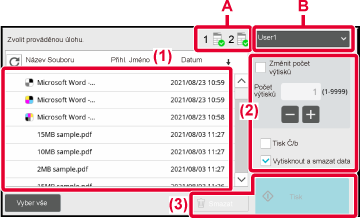 nabídce se zobrazí tiskové úlohy jiné skupiny multifunkčních zařízení.