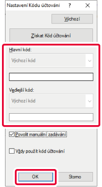 Pomocí tiskárny můžete zadat kód účtování tiskárny.