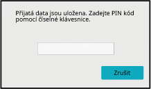 přijetí faxu objeví na dotykovém panelu obrazovka pro zadání PIN