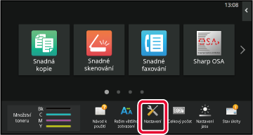 Ověřte si, že kontrolka upozornění na data bliká, a klepněte na klávesu [Nastavení] na výchozí obrazovce.