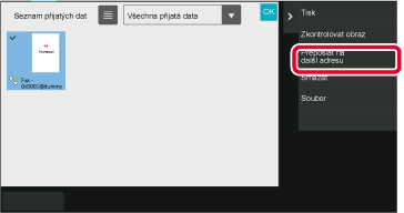 Přijatá data jsou uvedena v seznamu.Klepněte na klávesu přijatých dat, která si přejete předat, a na [Přeposlat na další adresu].