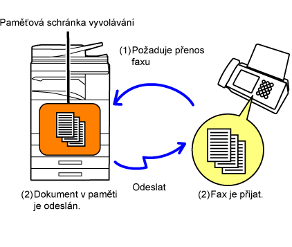 který bude faxován na jiný přístroj, uložen do paměťové schránky