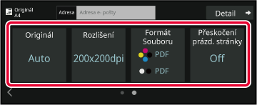Zadejte velikost skenování originálu, expozici, formát souboru a další položky.Odešlete originál.