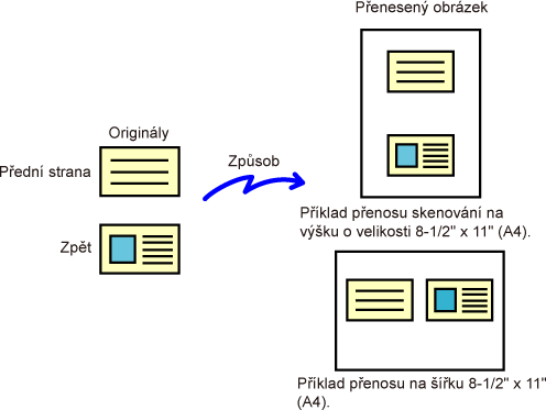 x 8-1/2")) se strany originálu skenují jak z jednostranně průchozího