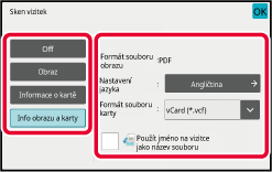 Když je zapnuto [Použít jméno na vizitce jako název souboru], jméno na skenované vizitce