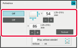 Klepněte na klávesu [On] a zadejte požadovanou velikost originálu.
