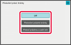 Klepněte na klávesu [Přeskočení prázdné stránky] nebo [Přeskoč prázdnou a zadní stín].