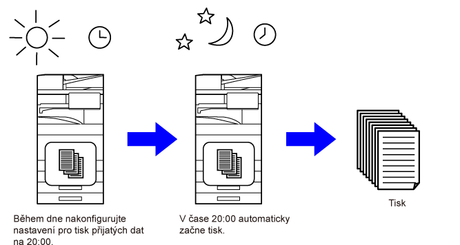 Povolením tohoto nastavení se faxy přijmou a uloží do
