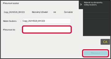 Klepnete-li na složku s heslem, objeví se obrazovka pro zadání hesla.Klepněte na tlačítko [Přesunout].