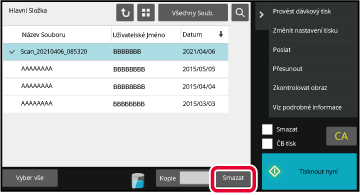 Zaškrtněte soubor a klepněte na klávesu [Smazat].