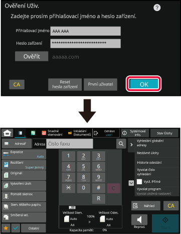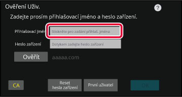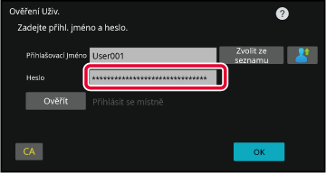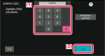 číslo uživatele a heslo. Požádejte administrátora přístroje o informace,