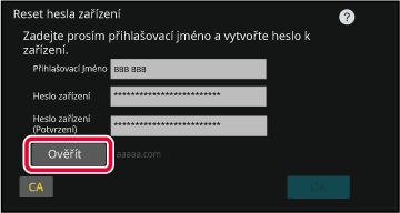 Zadejte heslo zařízení nastavené v kroku 3 v části „Potvrzení