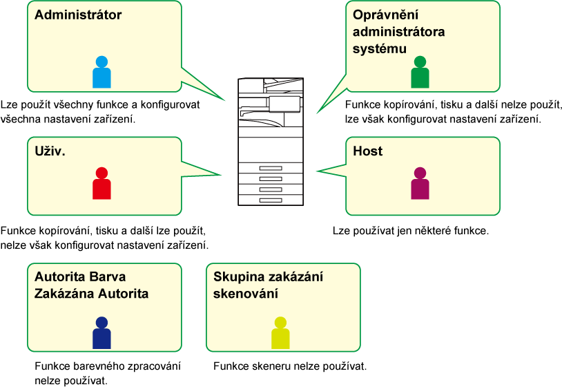 naskenovat nebo faxovat. Uživatelům lze také zakázat přístup k určitým