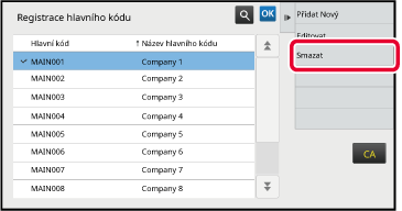 Klepněte a vyberte hlavní kód pro smazání, a pak klepněte na [Smazat] na panelu akcí.