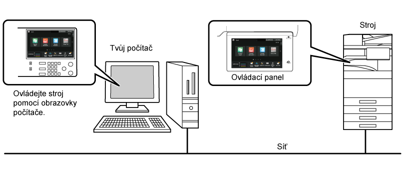Přístroj můžete z počítače ovládat ze stejného panelu jako