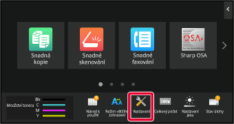 Na výchozí obrazovce klepněte na klávesu [Nastavení].Na horním štítku klepněte na položku, kterou chcete nastavit.