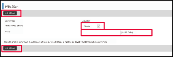 V počítači spusťte webový prohlížeč ve stejné síti, v níž se nachází přístroj, a zadejte IP adresu přístroje.Zvolte přihlašovací jméno a zadejte heslo.