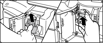 Træk hæfteklammeholderens udløserarm, og fjern hæfteklammeholderen.