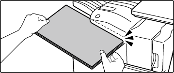 Når du ilægger papiret, blinker tasten for manuel hæftning grønt.Papir | Papirets retning, når det er indsat | Efter hæftning |