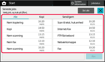 Ved tryk på tasten [Hjemmeskærm] vises hjemmeskærmen