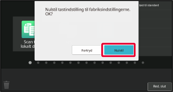 Indtast administratoradgangskoden.Tryk på [Nulstil tast til standard] på handlingspanelet.