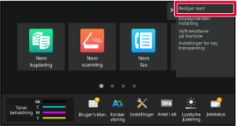 Åbn handlingspanelet på hjemmeskærmen, og tryk på [Rediger start].
