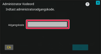 Skærmen for indtastning af administratoradgangskode kommer frem. Indtast adgangskoden.