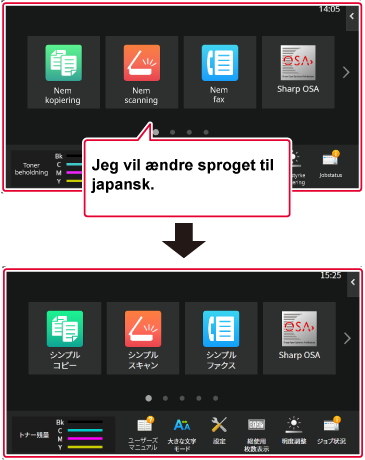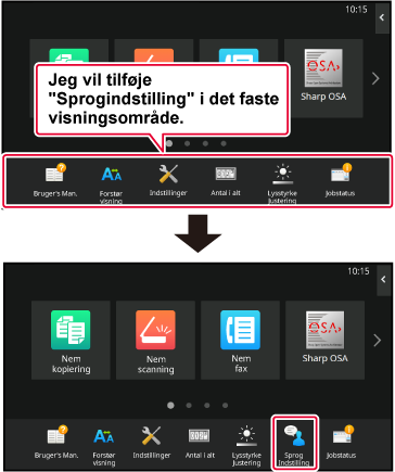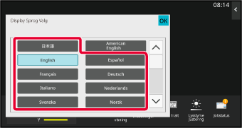 Tryk på tasten [Sprog Indstilling] på hjemmeskærmen.