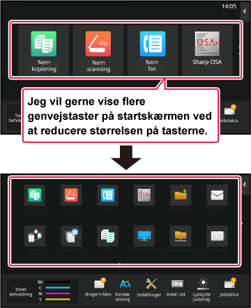 På hjemmeskærmen kan du ændre antallet af genvejstaster,