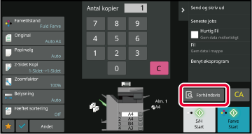 Tryk på tasten [Forhåndsvis] for at scanne originalen.