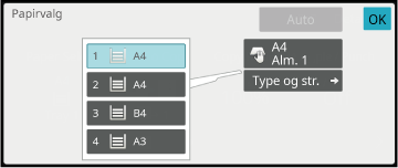 Maskinen er indstillet til automatisk at vælge en skuffe,