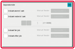 Når indstillingerne er angivet, skal du trykke på tasten [OK].Denne funktion indsætter separatorsider