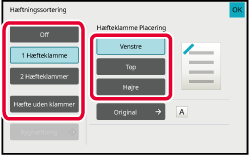 Aktiverer sorteringsfunktionen, når originalen lægges i den automatiske dokumentfeeder, og aktiverer gruppefunktionen, når originalen placeres på glaspladen. |
