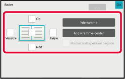 Tryk på displayfeltet for talværdier, der angiver slettebreddeområdet på forsiden eller bagsiden, og indtast området med de numeriske taster.Tryk på tasten [Farve Start] eller [S/H Start] for at starte kopieringen.