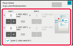 Tryk på området, der angiver bevægelsesafstanden på for- eller bagsiden, og indtast afstanden med nummertasterne.Anbring originalen.