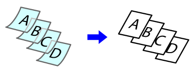 Brug denne indstilling, når originalerne har 2 forskellige størrelser og ikke har sider med samme længde. Denne indstilling kan kun anvendes med følgende kombinationer af originalformater: • A3 og B4 • A3 og B5 • B4 og A5 • A4 og B5 • B4 og A4R • B4 og A5 • B5 og A4R • B5 og A5 • 11"x17" og 8-1/2"x14" • 11"x17" og 8-1/2"x13" • 11"x17" og 5-1/2"x8-1/2"