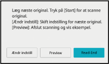 Gentag dette trin, indtil alle originaler er scannet.Gentag indtil alle sider er blevet scannede og kontroller eksempelvisningsbilledet på eksempelskærmen.