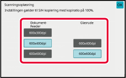 Opløsningen kan indstilles til både dokumentfeeder og glasplade. Når indstillingerne er angivet, skal du trykke på tasterne [OK] og [Tilbage] efter hinanden.Anbring originalen.