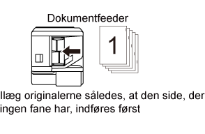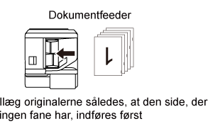 Når ManuelFeeder anvendes, skal papiret placeres med den trykte side nedad.Læg originalen i, og tryk på tasten [Forhåndsvis].