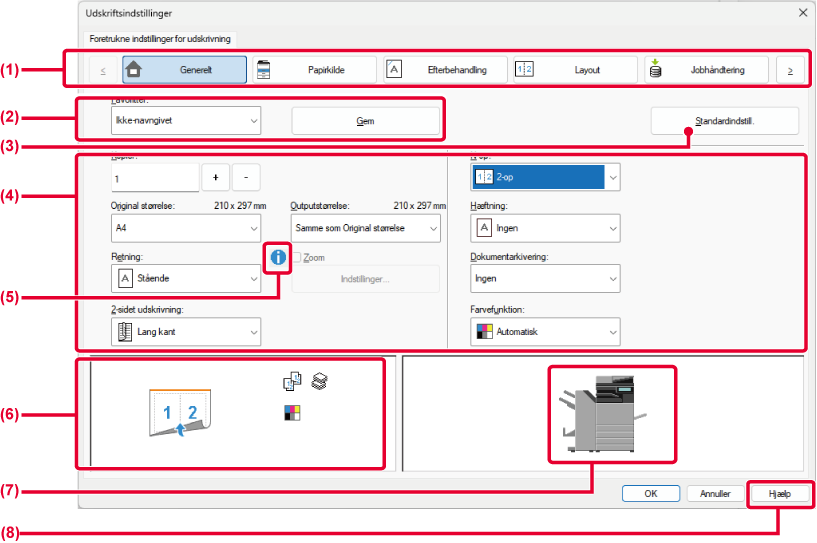 funktioner, der relateres til layoutet, f.eks. to-sidet udskrivning