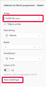 Vælg printerdriveren for maskinen, og klik på [Flere indstillinger].