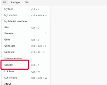 Vælg [Udskriv] fra menuen [Filer] i Notepad.