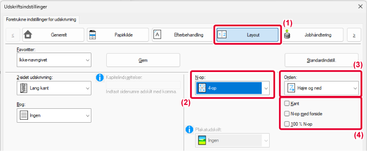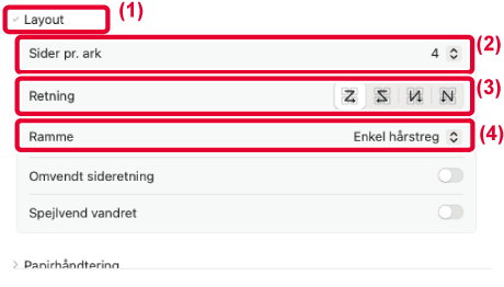 eller [4-op] (4 sider pr. ark), får man de følgende udskrivningsresultater