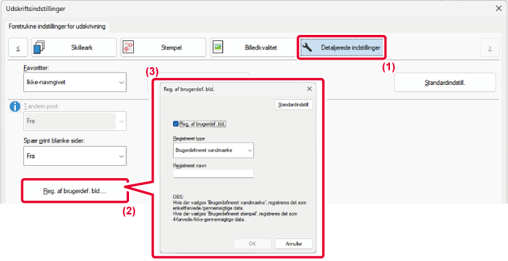 TILFØJELSE AF ET VANDMÆRKE PÅ UDSKREVNE SIDER (VANDMÆRKE)