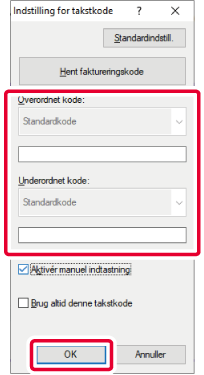 Indtast overordnet kode og underordnet kode og klik på [OK].