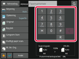 Læg originalen i den automatiske dokumentfeeder eller på glaspladen.Indtast destinationsfaxnummeret.