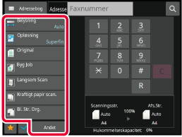 Brug de numeriske taster til at indtaste destinationsnummeret direkte eller søg og hent adressebogen eller nummeret.Konfigurer indstillingerne.