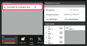 at trykke på jobstatusdisplayet og trykke på [Kontroller modtagne data] i handlingspanelet