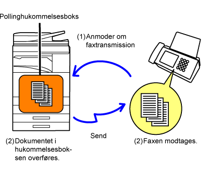 dokument, der faxes til den anden maskine, scannes til en pollinghukommelsesboks.